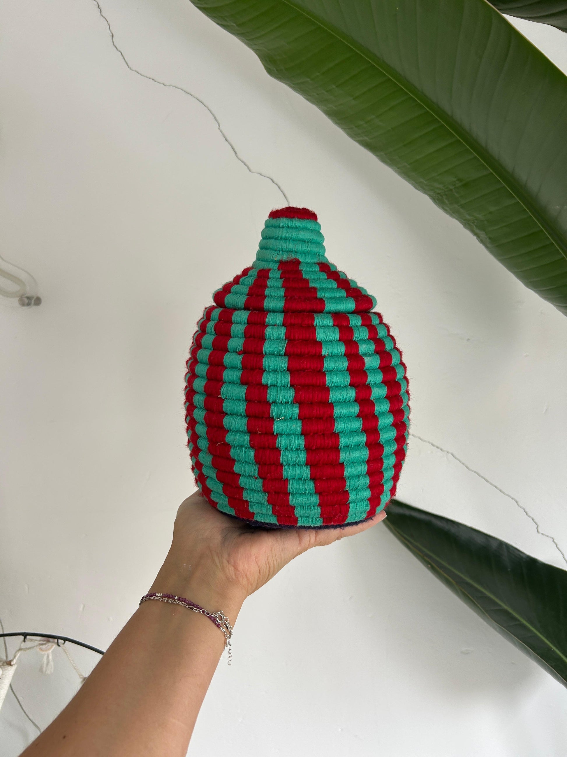 Geweldig mooie wollen opbergmanden. Onze berber manden worden met de hand gemaakt door dames in het Atlas gebergte in Marokko. Met veel liefde maken ze van gras, manden die ze met heerlijke felle kleurtjes wol bekleden. Elke mand is uniek en met de hand gemaakt.. dus oneffenheden maken ze nog unieker en mooier.. althans vinden wij.