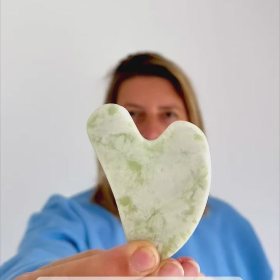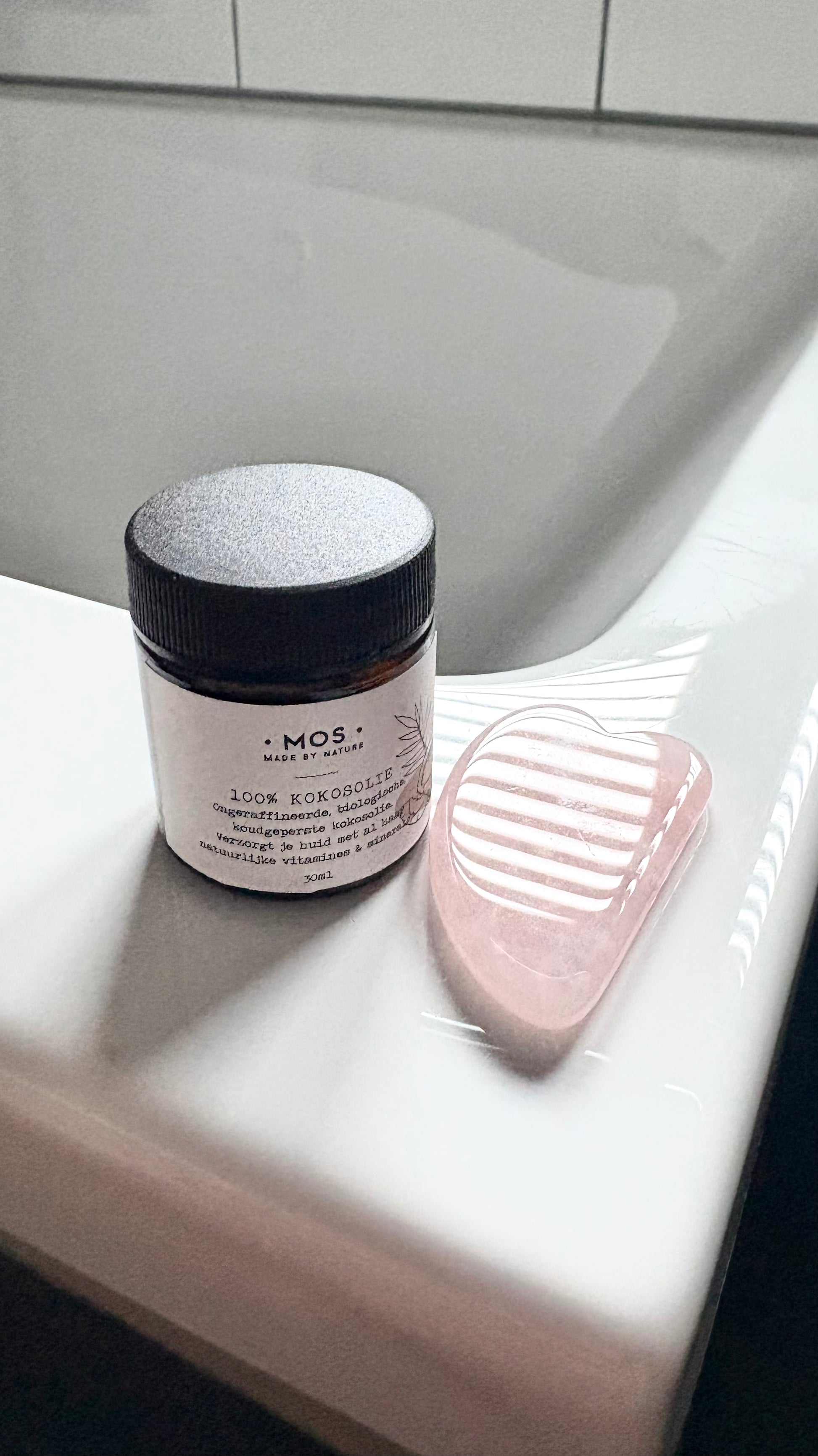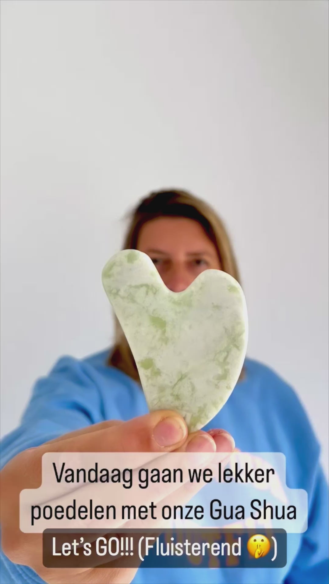 Het is tijd om jezelf heerlijk wat aandacht te geven.. en meid daar hoort deze gezichtsmassage tool dingetje helemaal bij.. Hij is gemaakt van Rozenkwarts (de steen van de liefde) en heet een Gua Shua. Met een serum of de eerste persing van een goede kokosolie (hebben wij toevallig ook) geef je je snuitje een stevige massage door alle kanten van de Jade tool te gebruiken. Geen idee hoe? Wij hebben een filmpje voor je gemaakt. Dus sluit de gordijnen, steek die geurkaars aan, haartjes in een paardestaart en pak je Gua Shua en je 'geleider' (serum of olie) erbij en let's enjoy some ME-time!