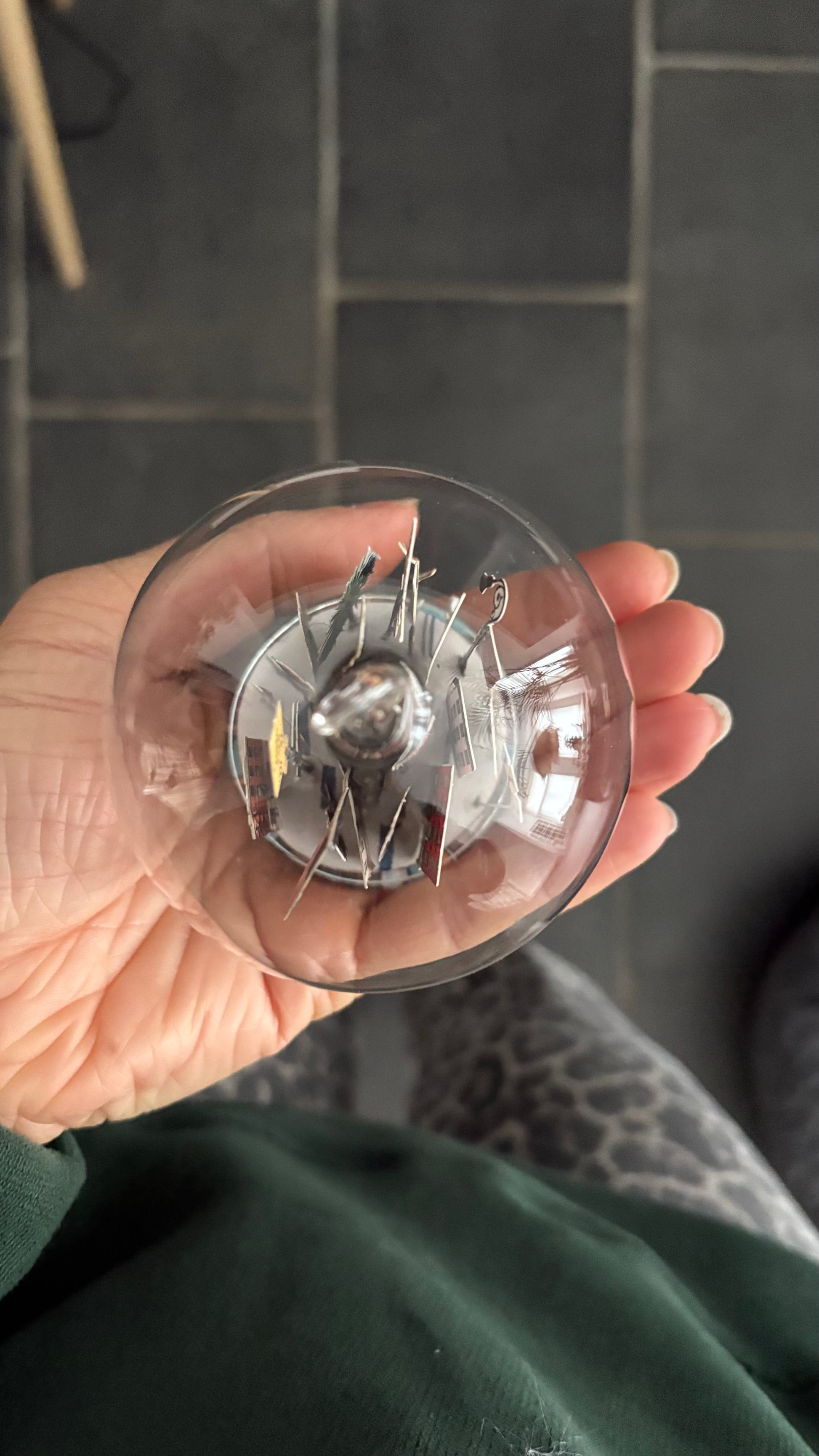 Het formaat van de glazen stolp is ongeveer: ø 8cm