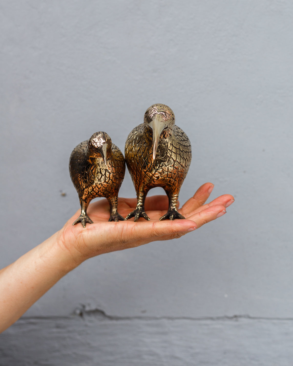 Stiekem heb ik altijd een gezonde fascinatie gehad voor vogeltjes, dus deze kiwi vogels uit Nieuw-Zeeland mochten dan ook direct onze winkel en websjop binnen vliegen! (mooie woordspeling..) Style het beeld op een stapel boeken of prachtig naast een plant met een klein frutsel ernaast.. want je weet, deze meid houdt van 3-voud in het interieur. Het vogeltje is gemaakt door Dani van messing, naast onze mamma vogel is ook onze kleine baby kiwi verkrijgbaar. Super lief als paar!