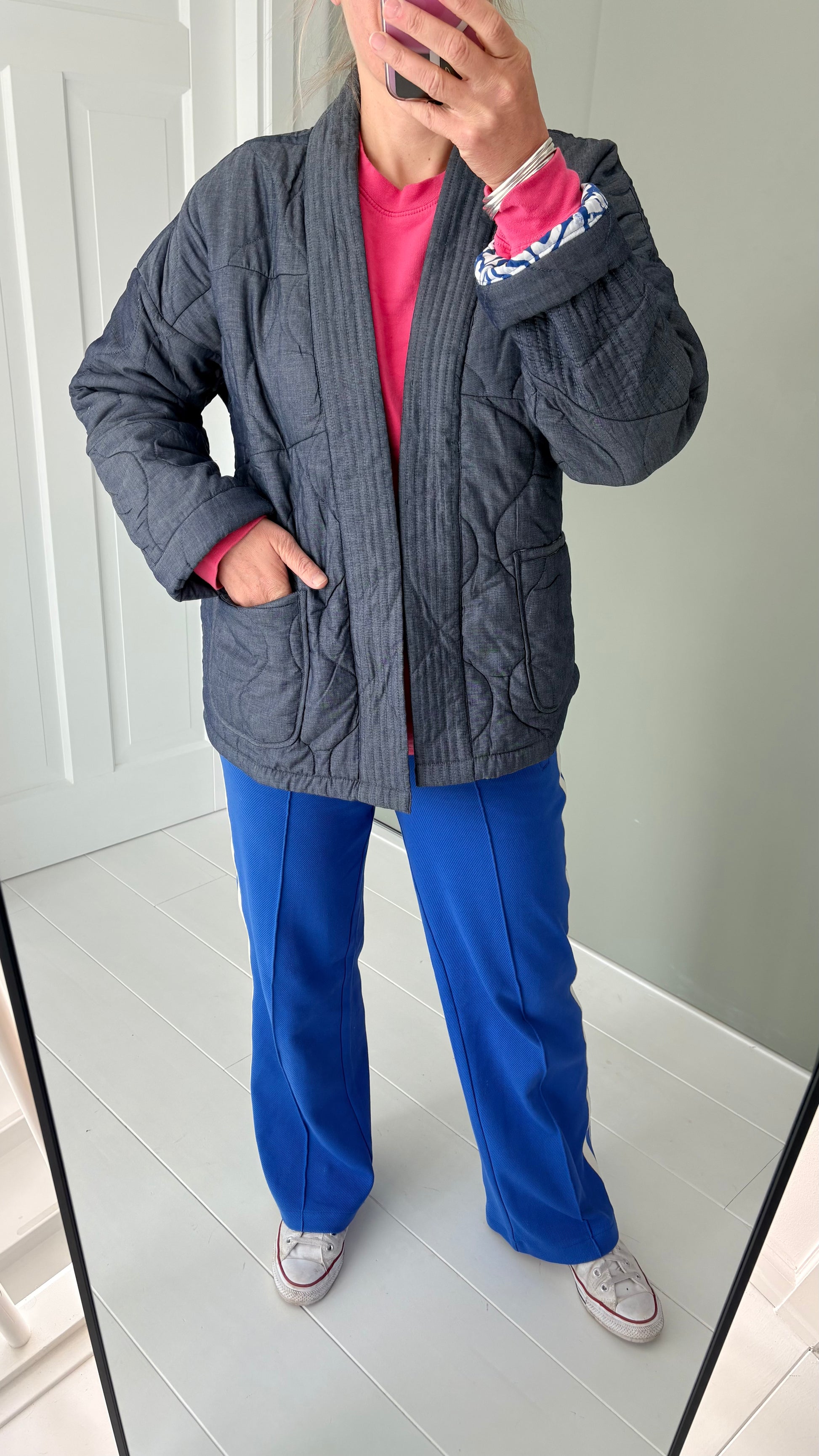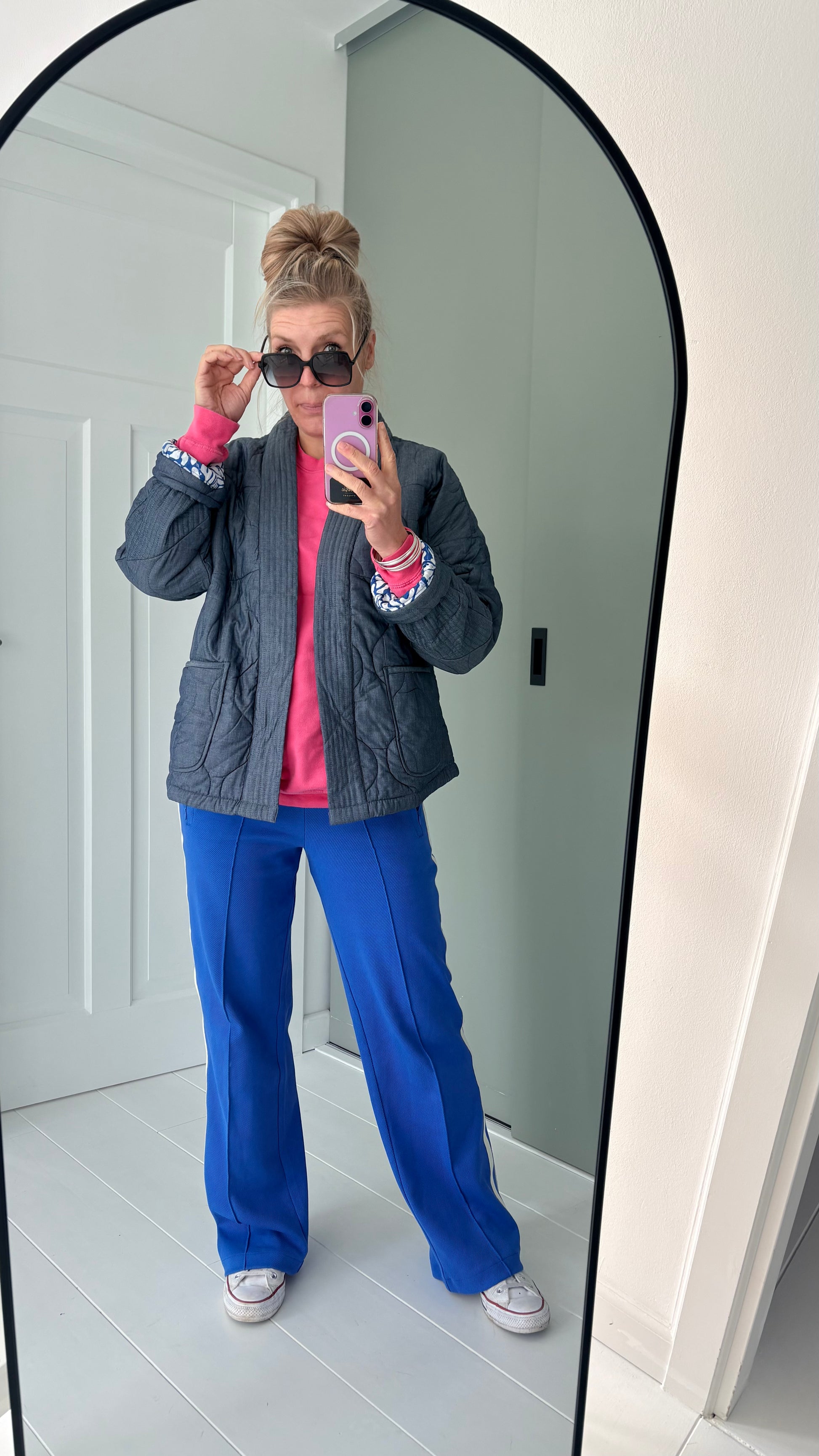 Ons Isa vestje is het perfecte tussenjasje voor deze lente. Ons jackie is ons eigen design, gemaakt van spijker-tencel stof en gewatteerd en is 2 kanten te dragen. (het spijkerstof wordt soepeler namate je haar draagt) De stof aan de binnenzijde heeft een fris wit met blauwe japanse design. Het vestje heeft een bijpassende ceintuur die tevens deze 2 designs op elke zijde heeft, waardoor je verschillende combi's kunt maken met je outfit.